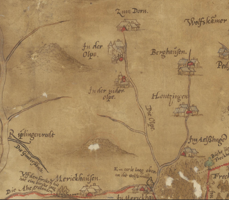 In der Olpe und In der nider olpe: Ausschnitt aus der Mercatorkarte von 1575 Link